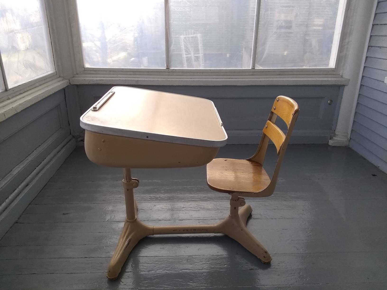 Vintage School Desk Kids Desk And Chair School Age Childs Desk Metal And Wood Industrial Mid Century Modern Adjustable Rhymeswithdaughter